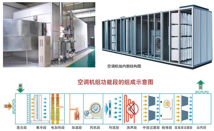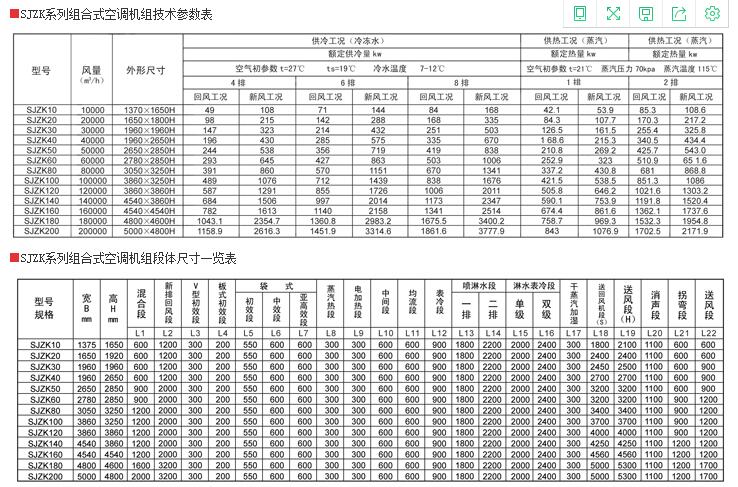 SJZK系列組合式空調(diào)機組,是一種以冷凍水為冷媒,以熱水或蒸汽為熱媒,以功能段為組合單元的中央空調(diào)設備,能完成空氣的混合、 過濾、凈化、殺菌、輸送、冷卻、加熱、去濕、加濕、消聲等功能。組合式空調(diào)機組廣泛應用于電子儀表、精密機械制造、紡織、化纖、卷 煙、制藥、醫(yī)療、食品、化妝品、火電站、核電站、輕化工、賓館、展覽館、辦公樓、倉庫、商場、娛樂場所、潔凈室、醫(yī)院、實驗室、學 校、圖書館、會議室、食堂、餐廳、計算機房等行業(yè)和場所;形式多樣、型號齊全,申江空調(diào)采用空調(diào)技術和設計構思,以科 學嚴謹?shù)墓ぷ鲬B(tài)度和研究開發(fā)手段生產(chǎn)能滿足各種條件、型號齊全、結構型式多樣的組合式空調(diào)機組,本公司生產(chǎn)的組合式空調(diào)機組 包括標準型組合式空調(diào)機組、組合式凈化空調(diào)機組及各種特殊規(guī)格型號的組合式空調(diào)機組。本公司生產(chǎn)的組合式空調(diào)機組具有外型美觀、熱 交換效率高、結構合理、強度好、漏風率低、噪音低、運轉平穩(wěn)、良好的防冷橋措施、保溫效果好、安裝維護保養(yǎng)簡單方便、安全可靠等特 點,適合各種舒適性中央空調(diào)系統(tǒng)和潔凈空調(diào)系統(tǒng)使用;特殊要求:為滿足不同客戶的需求,本公司隨時提供非標準或特殊配置機型的性能 參數(shù)和外型尺寸;為滿足客戶對機組控制的不同要求,可根據(jù)客戶的需求提供啟動控制系統(tǒng)、自動控制系統(tǒng)。